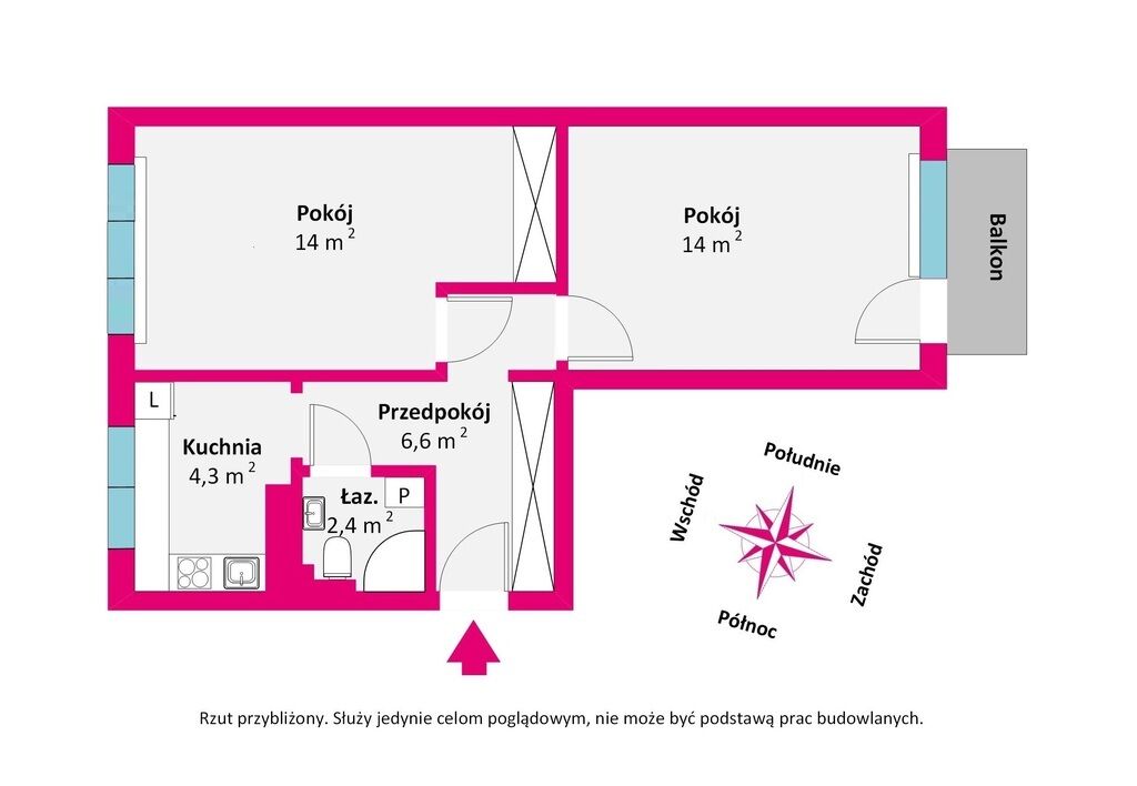 i wschód (sypialnia i kuchnia).