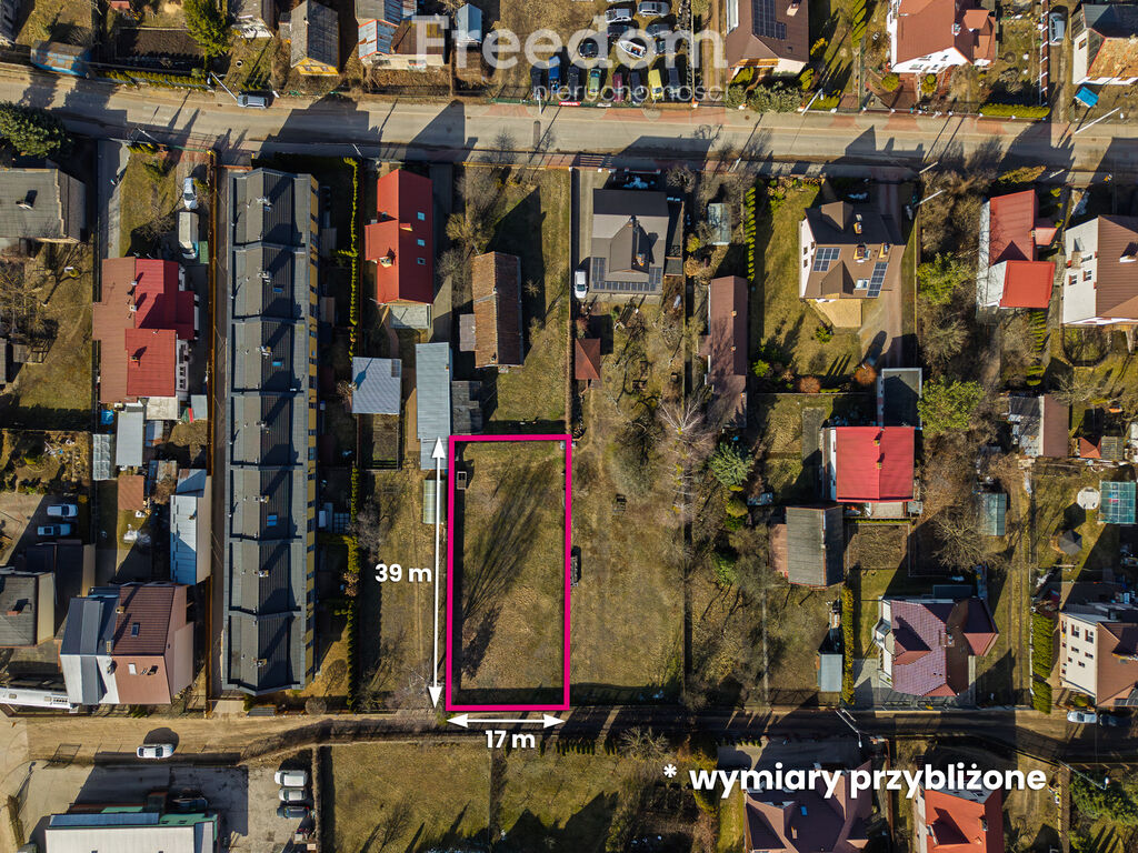 657m2 o wymiarach przybliżonych: 17m x 39m.