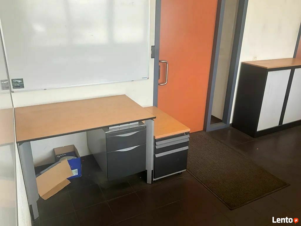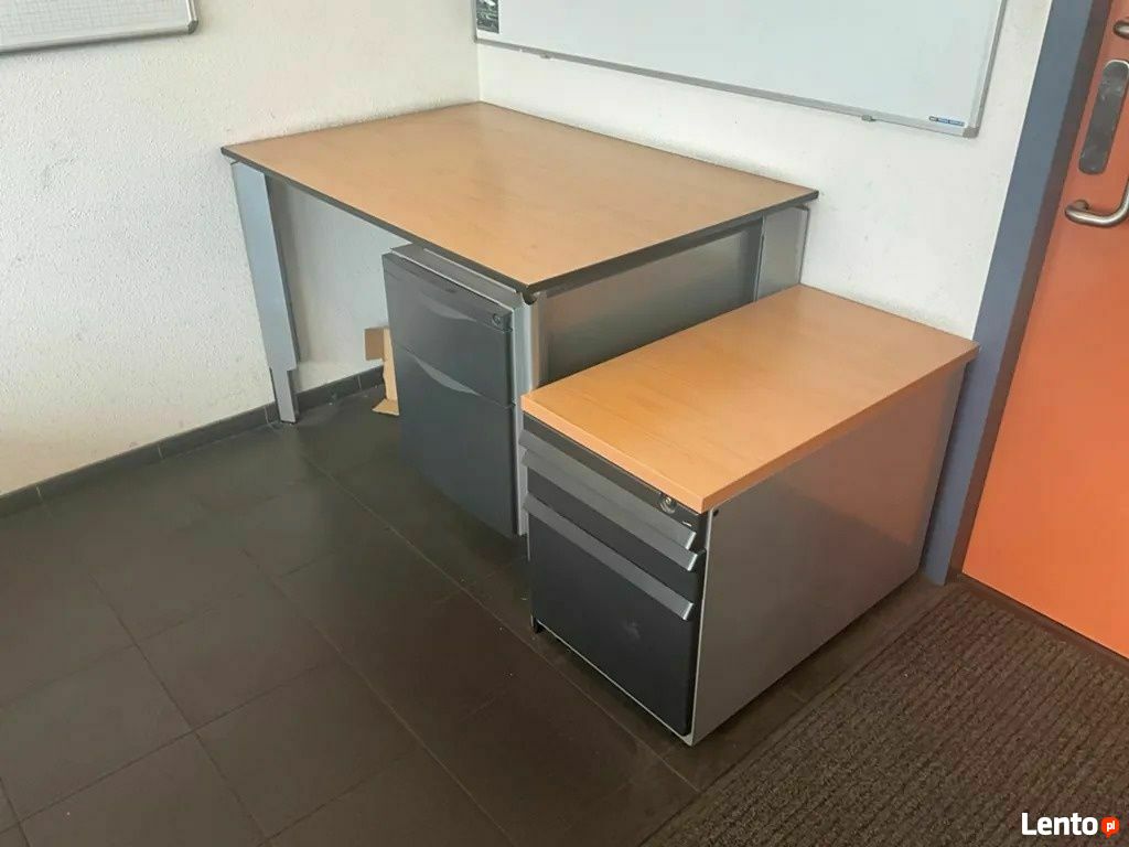 Biurko z przymocowanym od spodu kontenerkiem na dokumenty. Kontenerek jest bardzo pojemny.Cena biurko z kontenerkiem