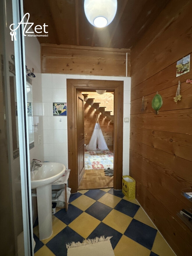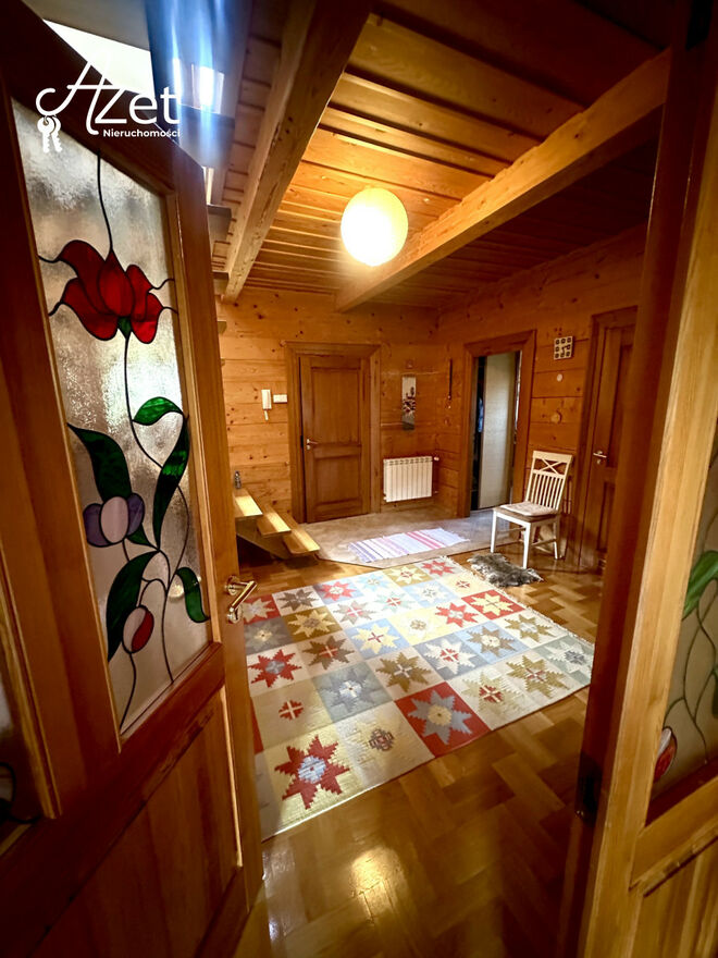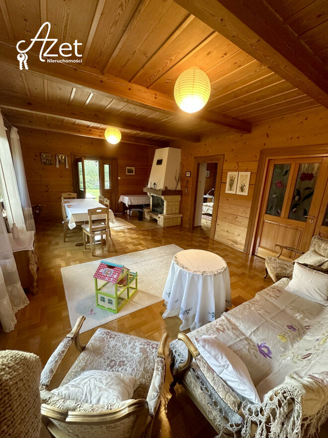 Unikatowy drewniany dom z bali w zielonym sercu Dojlid Górnych.W malowniczej części Białegostoku, w otoczeniu zieleni i zabudowy jednorodzinnej, znajduje się niepowtarzalny dom z bali - solidny, klimatyczny i otulony przyrodą. Budynek o powierzchni użytkowej 319 m², w całości podpiwniczony, z dużym tarasem i garażem, emanuje ciepłem naturalnych materiałów - drewna, cegły, kamienia i ceramiki.