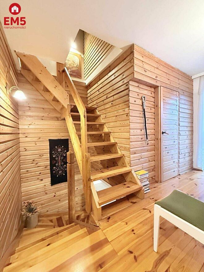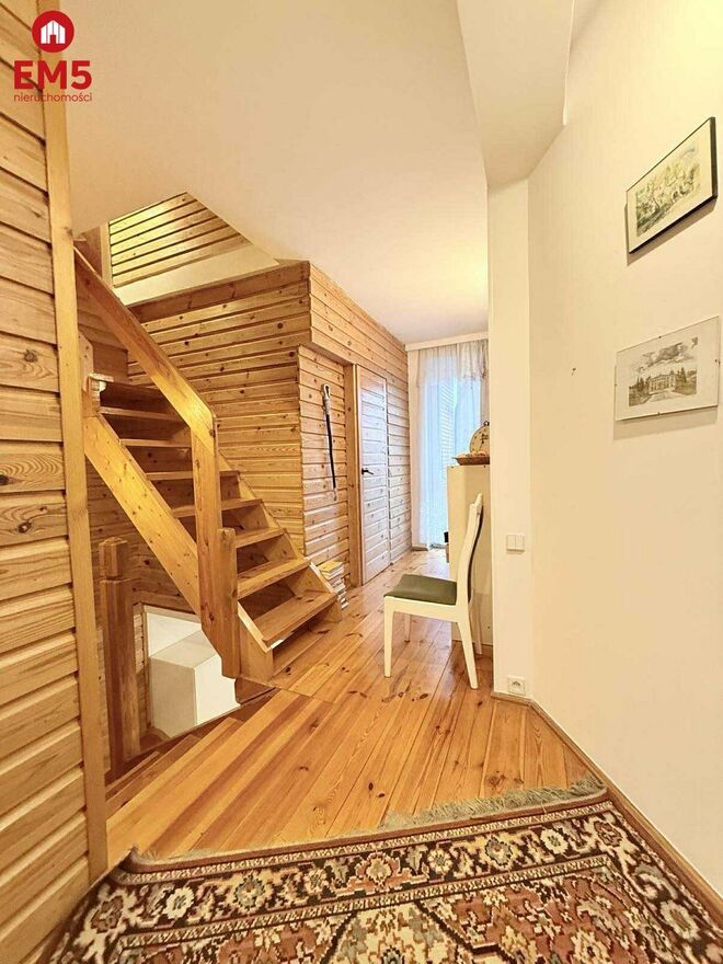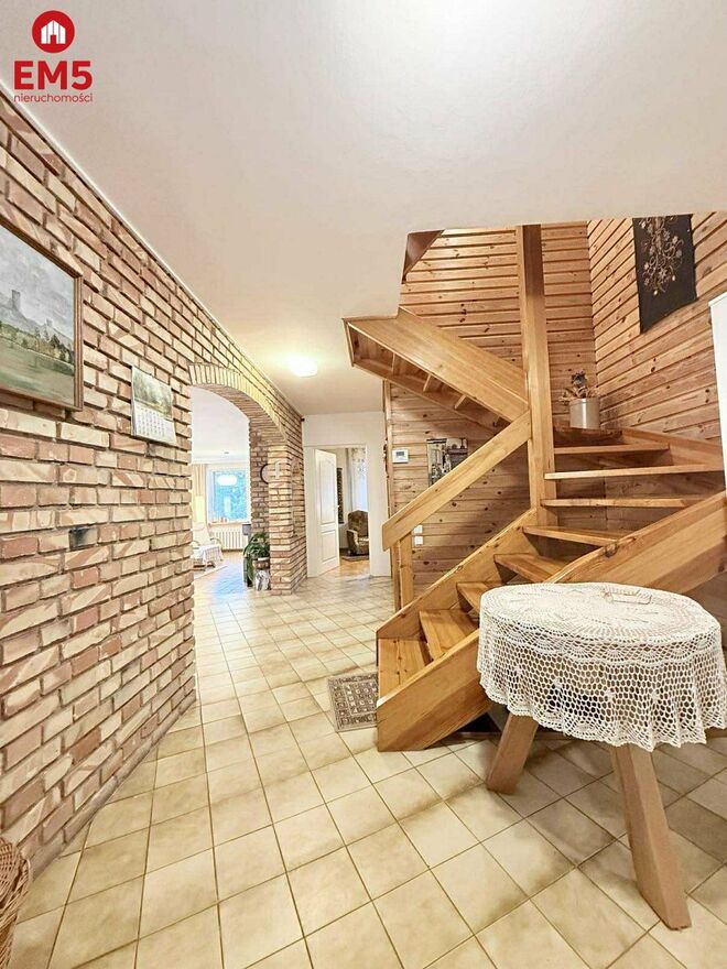 Dodatkowym atutem jest poddasze użytkowe z toaletą, wykończone, do wykorzystania jako przestrzeń na bawialnię dla dzieci czy też do pracy. Dom zbudowany przez właściciela budowlańca i wykończony przez projektanta wnętrz. Technika budowy tradycyjna- cegła, do wnętrz zostało wykorzystane drewno dębowe oraz sosnowe, co nadaje przytulności i charakteru.