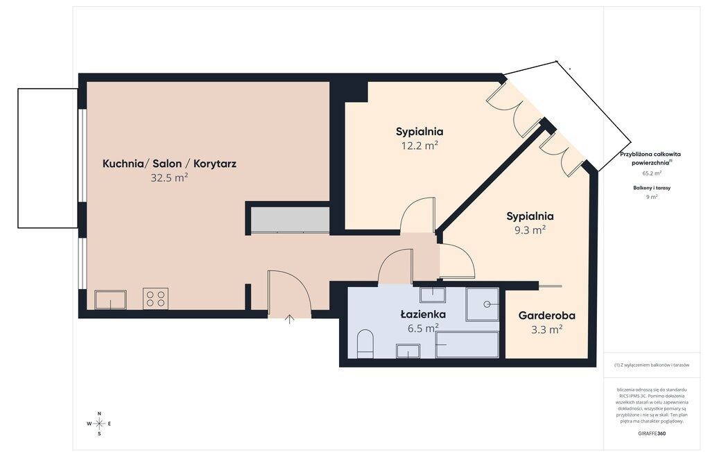 - dwa balkon oraz piwnica o powierzchni 3,70 m2
