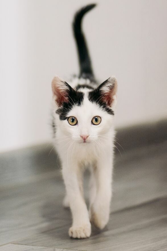 To kotka pełna życia – wszędzie jej pełno, ciekawa świata i bardzo towarzyska. Świetnie dogaduje się z ludźmi, a widząc psa, jest bardziej zaciekawiona niż przestraszona – prawdopodobnie wcześniej mieszkała z jakimś psiakiem. Po powrocie z pracy to ona pierwsza wita człowieka :)