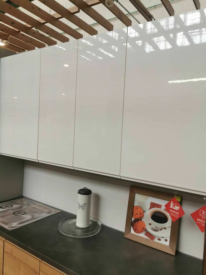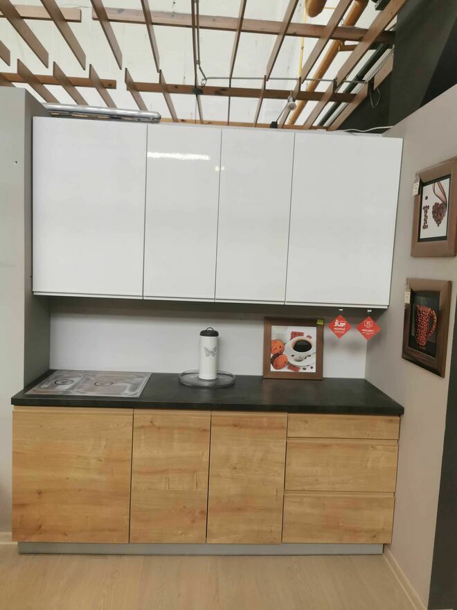 Wyprzedaż kuchni Sole z ekspozycji w salonie meblowym Black Red White przy ulicy Przędzalnianej 60 w Białymstoku.Wymiary kuchni: szerokość 2 m, wysokość dolnych szafek z blatem 87 cm, wysokość górnych szafek 95 cm.