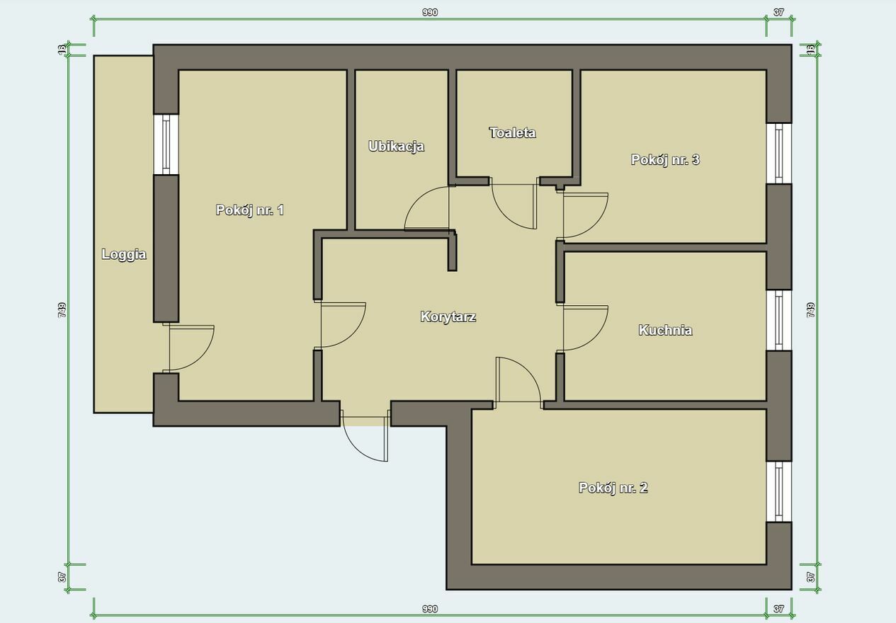 Nieruchomość znajduje się na trzecim z dziewięciu pięter, ma powierzchnię 59,70 m², jest dwustronne. Składa się z korytarza, 3 pokoi, wspomnianej loggi oraz oddzielnej łazienki i ubikacji. Pomieszczenia są nieprzechodnie, przestronne i widne.