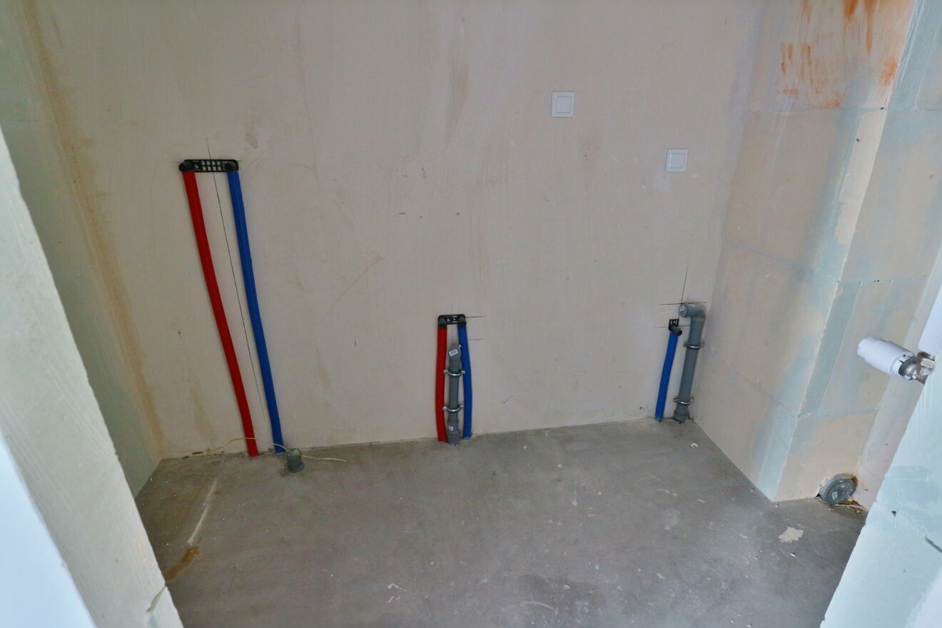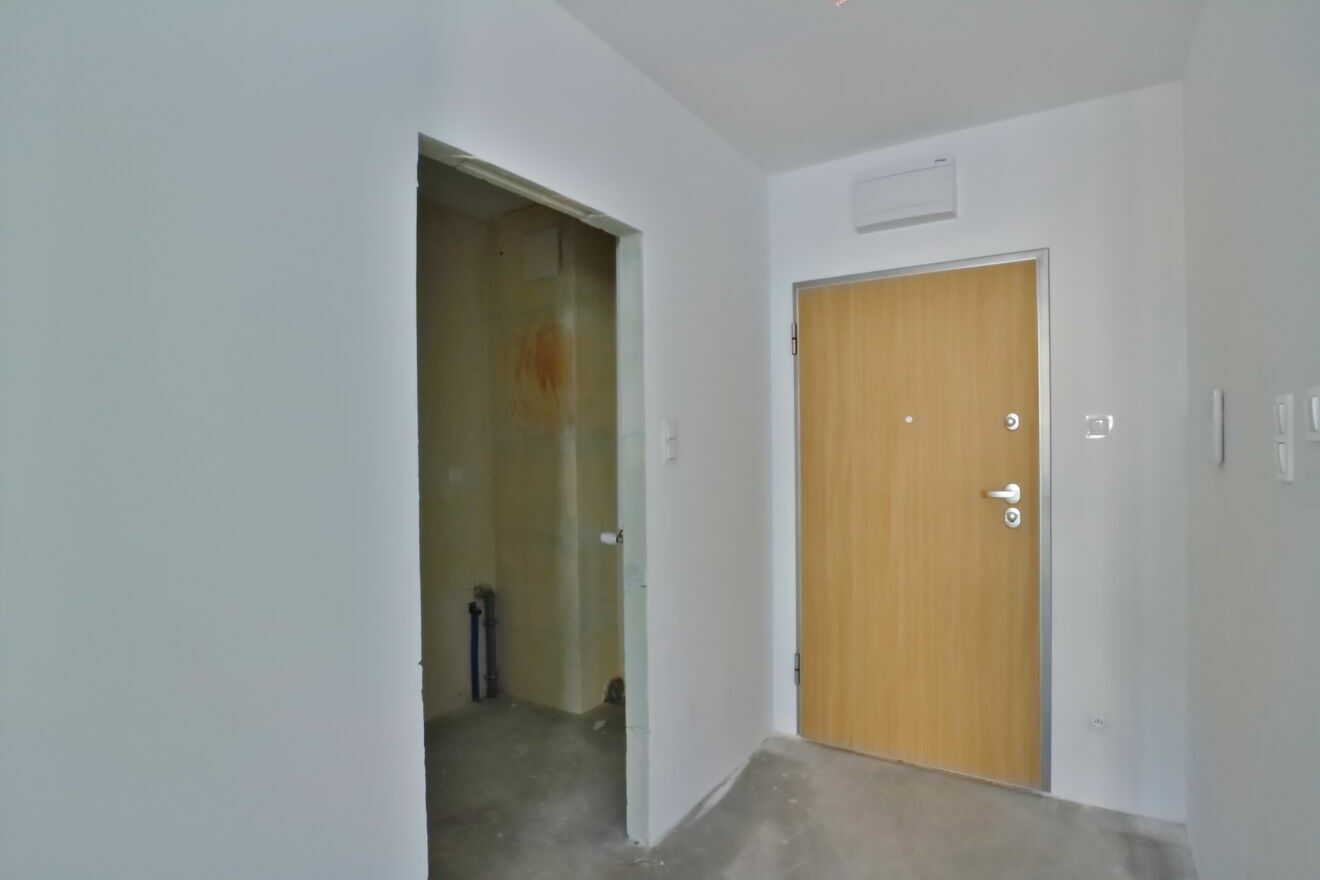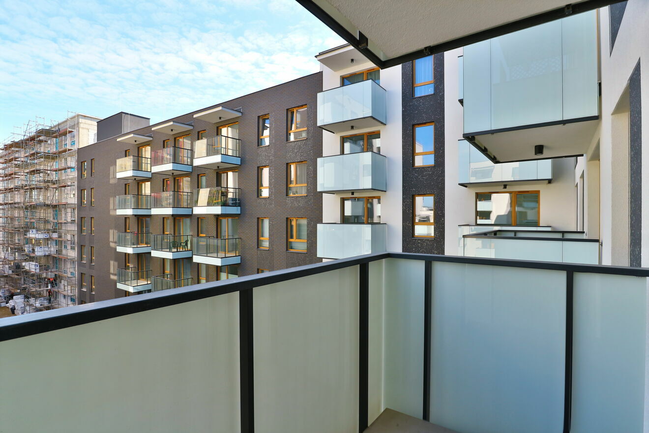 Stan deweloperski. Ścian szpachlowane i pomalowane na biały kolor. Całkowicie wykończony balkon.