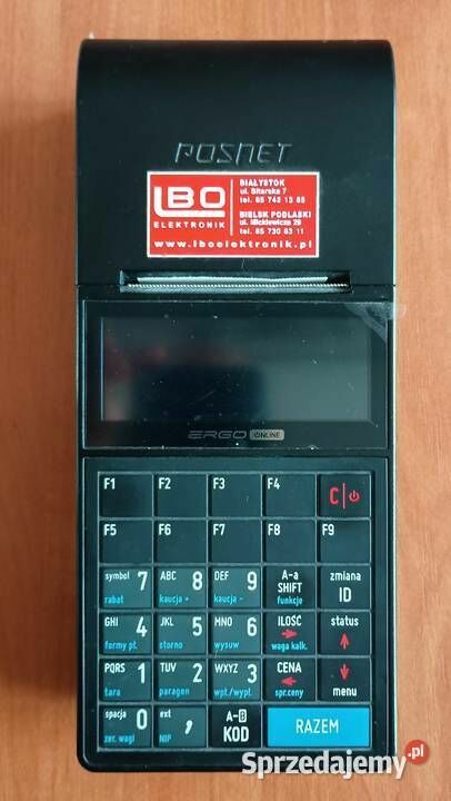 Kasa fiskalna ERGO Online – stan idealny, komplet Sprzedam kasę fiskalną ERGO Online, używaną, w idealnym stanie, po zamknięciu działalności gospodarczej. Kasa została prawidłowo zamknięta fiskalnie i wyrejestrowana.Stan techniczny: idealny, w pełni sprawna