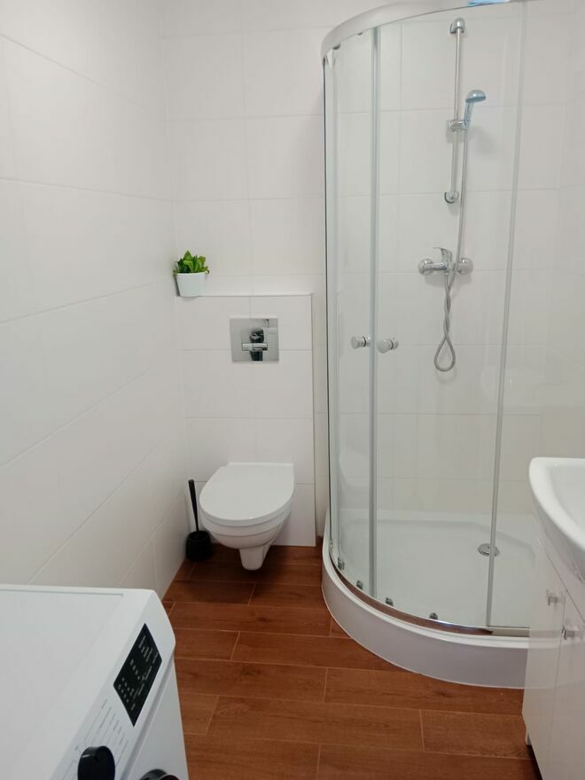 Czynsz miesięczny 1400 zł plus prąd i woda z licznika. Wymagana kaucja zwrotna równowartości 1 miesiąca.