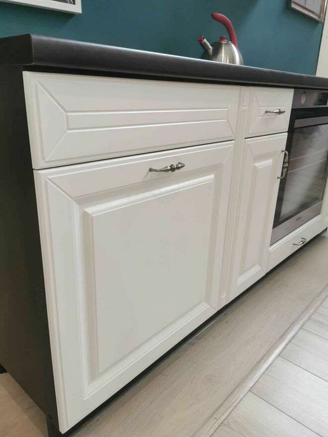 Wyprzedaż ekspozycji z salonu Black Red White przy ul. Przędzalnianej 60 w Białymstoku.Zestaw mebli kuchennych OLDER. Szerokość 190 cm, wysokość dolnych szafek z blatem 86 cm,