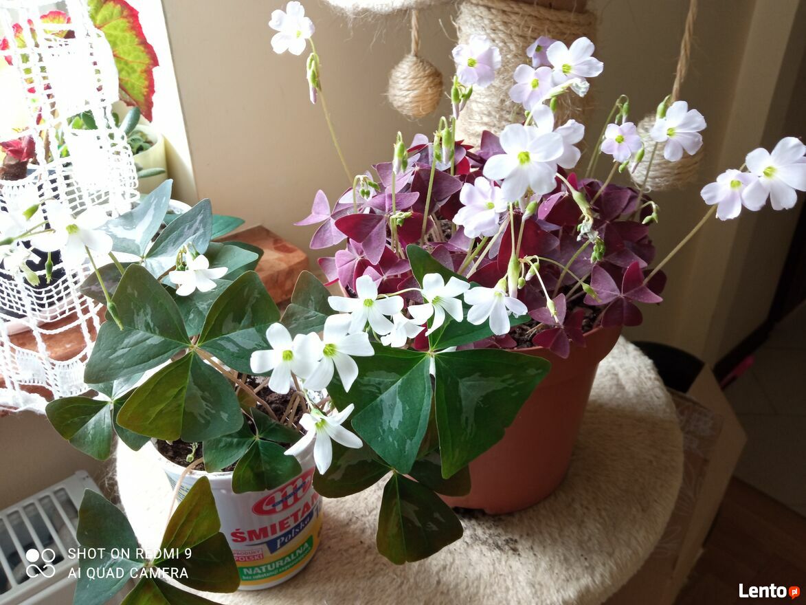 Sprzedam za 20 zł szczawika kwitnącego liliowymi kwiatuszkami; jest to roślina domowa, bezproblemowa w hodowli; dzięki atrakcyjnie wybarwionym liściom ( bordowo- fioletowe lub zielone) będzie ozdobą mieszkania przez cały rok.; w sezonie można wystawiać na zewnątrz;Begonie sprzedaję w cenie od 15 do 20 zł