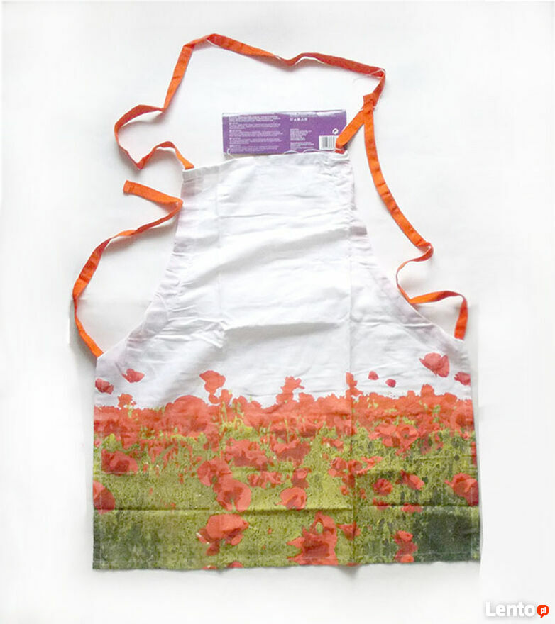 Nowy fartuszek kuchenny ze wzorem w kwiaty maki. Materiał; bawełna 100%Anna