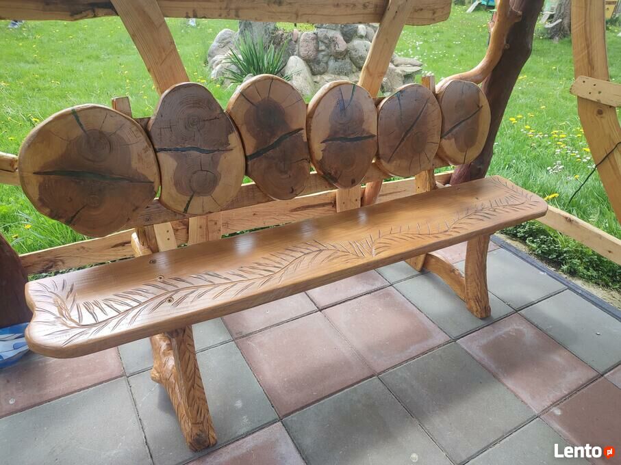 Sprzedam ręcznie rzeźbioną unikalną ławkę z drzewa jesionowego. Oparcie plastry wypełniane żywicą epoksydową. Ławka zabezpieczona gruntem i lakierobejcą z teflonem VIDARON.Kontakt wyłącznie telefoniczny. Nie odpisuję na wiadomości.