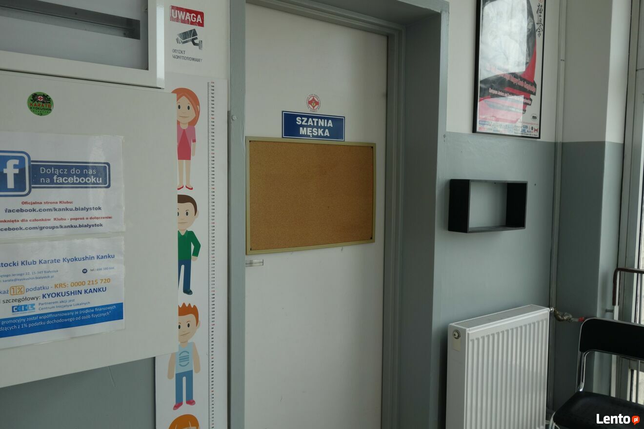 - dwóch szatni- damskiej i męskiej a w nich WC i kabiny prysznicowe.