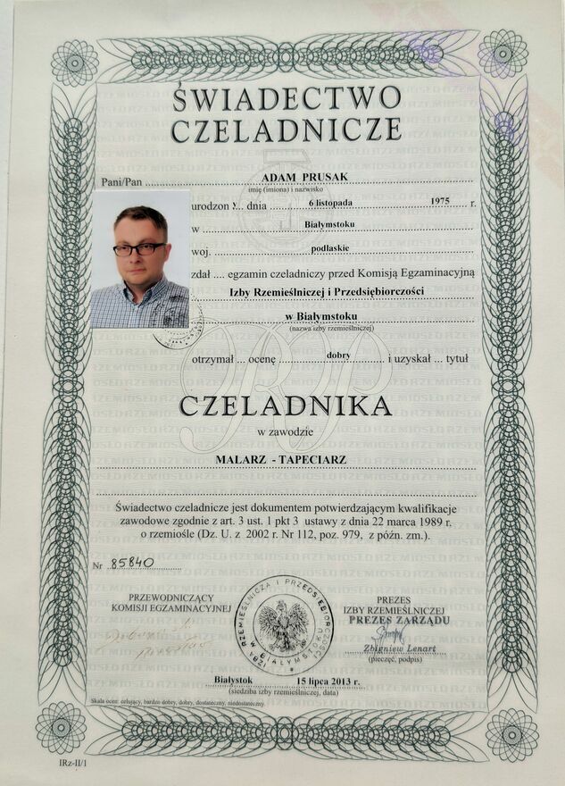 Jestem dyplomowanym, certyfikowanym malarzem z ponad 15-letnim doświadczeniem. Przez cztery lata prowadziłem własną firmę malarską, a teraz, w Białymstoku, uruchamiam autorski projekt szkoleniowy, który jest skierowany do amatorów którzy sami chcą odświeżyć a nawet przygotować i pomalować swoje nowe mieszkania. Moim celem jest podzielenie się moją rozległą wiedzą teoretyczną i praktyczną, którą zdobyłem przez lata pracy w zawodzie i prowadząc praktyczne szkolenia dla firm budowlanych.Chcę uprościć i odczarować proces malowania, aby umożliwić ludziom spoza branży bardziej profesjonalne wykonanie tych prac na własną rękę. Moim celem jest oszczędzić Wam czas, pieniądze, a przede wszystkim nerwy. Przeprowadzę Was przez cały proces: od oceny ścian przed malowaniem, przez organizację miejsca pracy i niezbędnych narzędzi, po dobór odpowiednich materiałów (takich jak gładzie, akryle i taśmy) oraz farb, aż do samego procesu malowania.