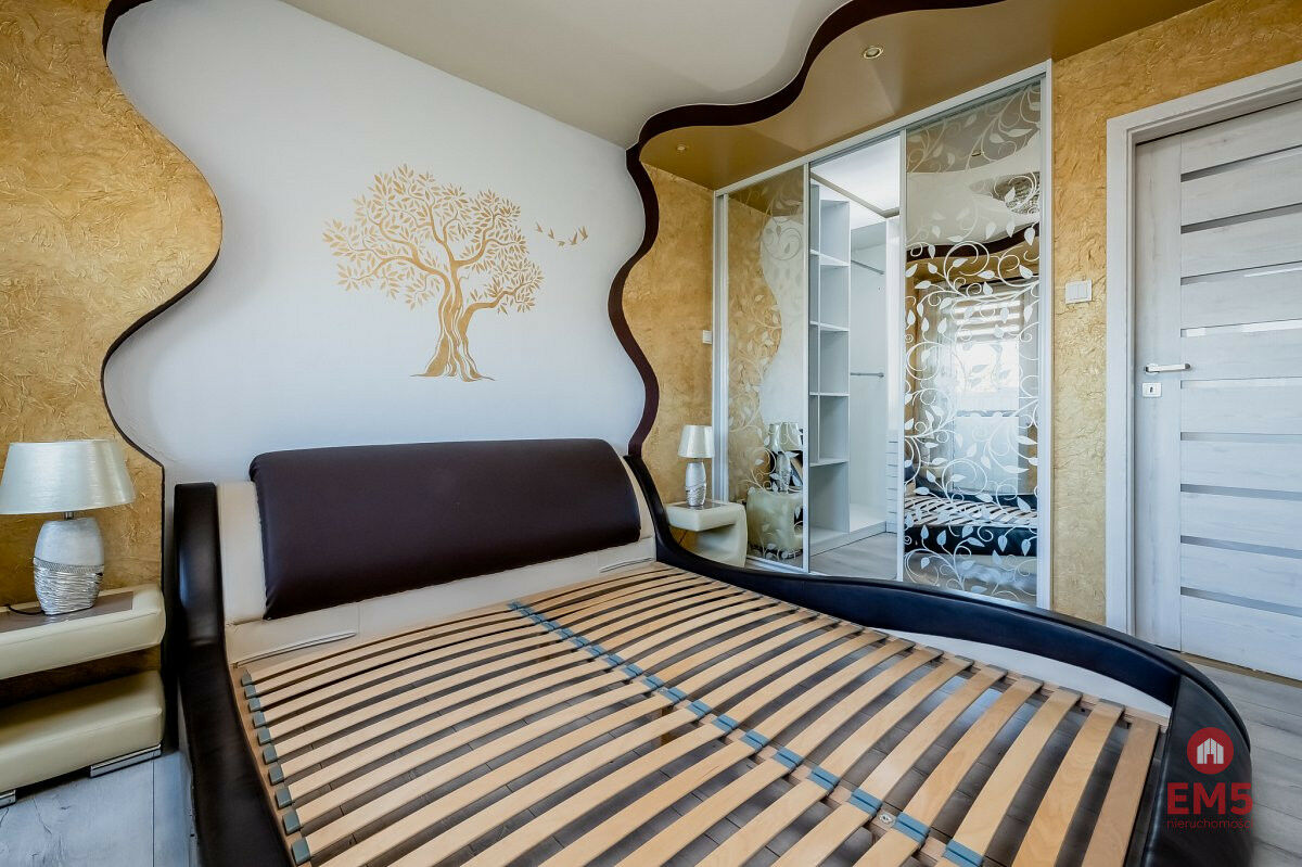 Mieszkanie składa się z: - Sypialni z dużym łóżkiem, przestronną garderobą i wyjściem na balkon. - Pokoju dziecięcego, który można również wykorzystać jako drugą sypialnię lub przestronny gabinet. - Przytulnego salonu połączonego z w pełni wyposażoną kuchnią. - Przestronnej łazienki z dużą wanną.