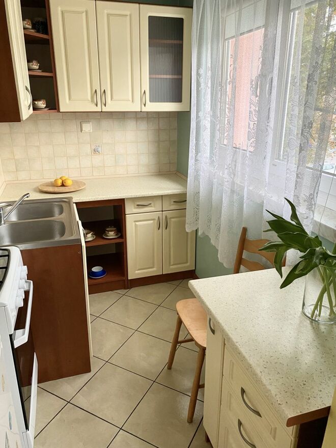 • Kuchnia z dużym oknem, zabudowana i wyposażona