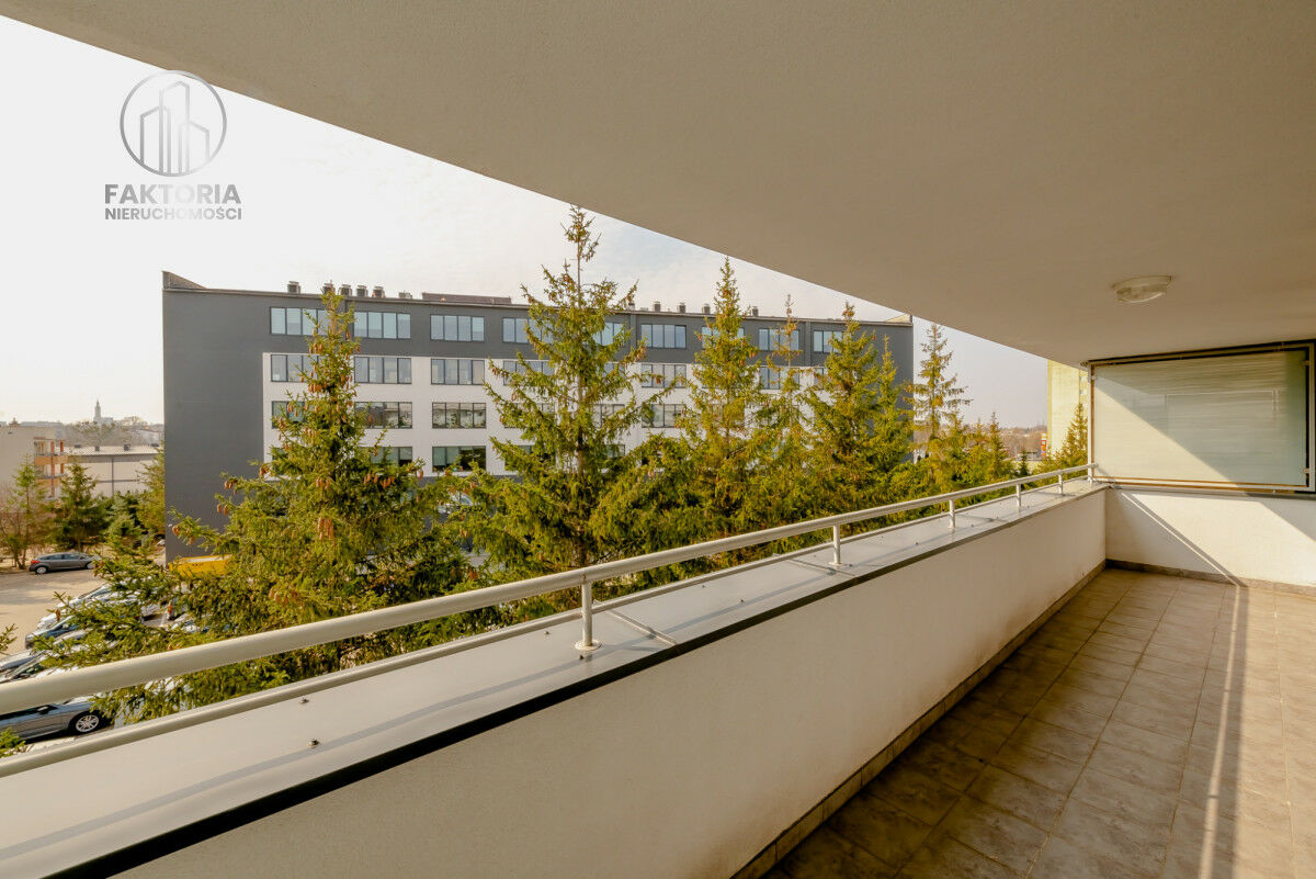 Z salonu wyjście na imponujących rozmiarów balkon, który latem może posłużyć za idealne miejsce do spędzania wolnego czasu.