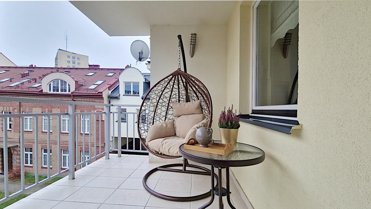 duży, słoneczny balkon, idealny na poranną kawę