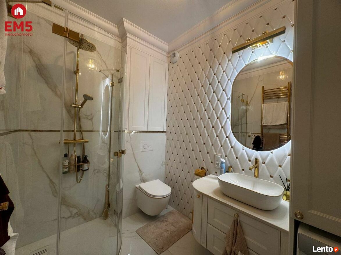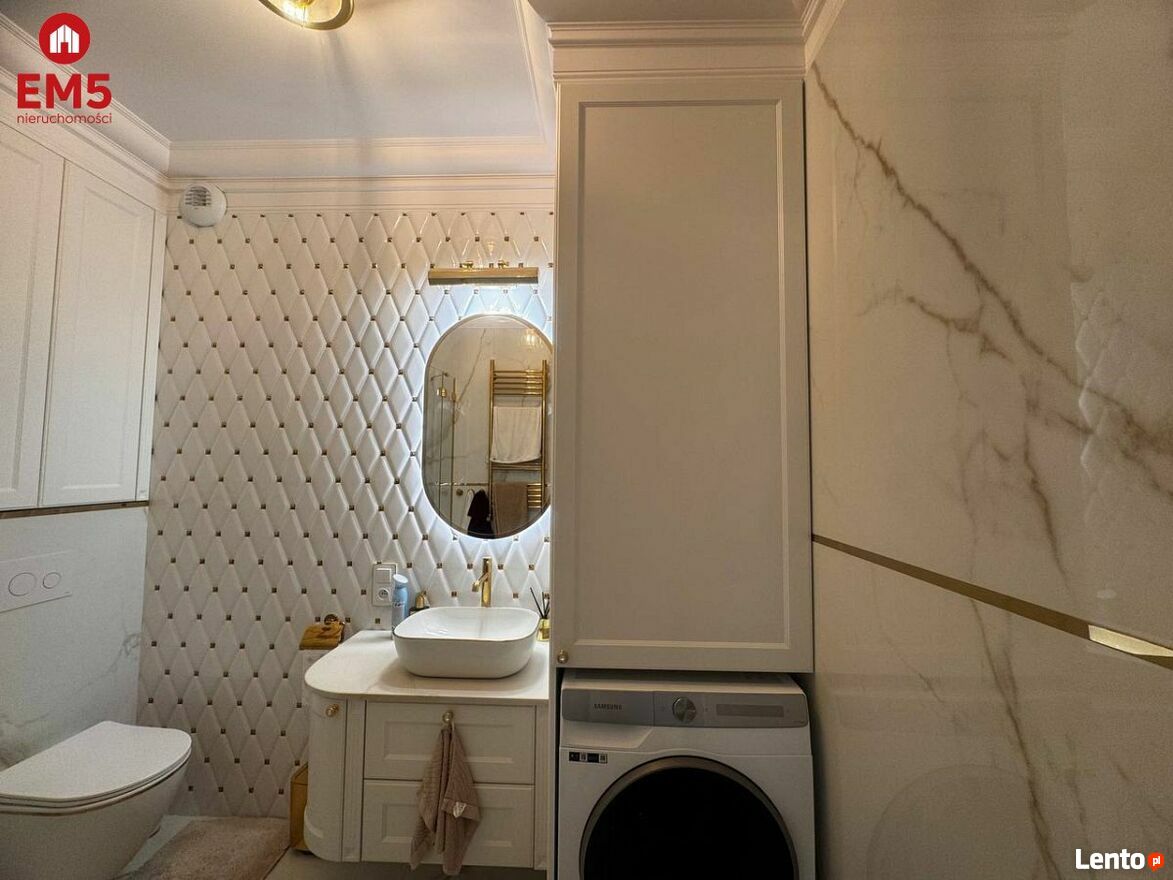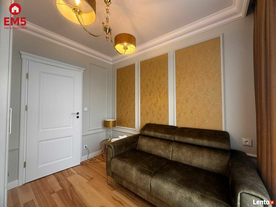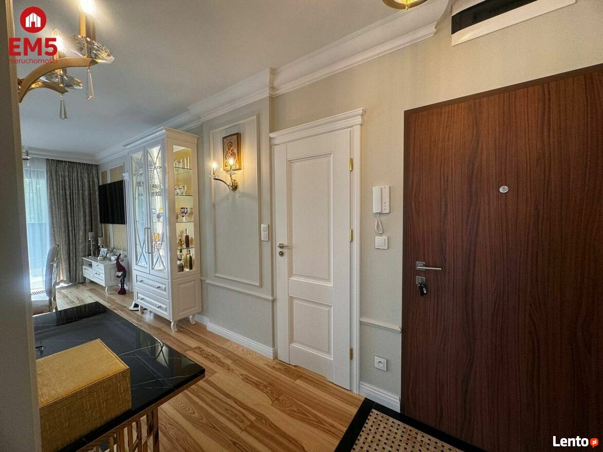 Apartament jest wykończony z materiałów najwyższej jakości i w pełni wyposażony w meble i AGD tak samo w wyższej jakości. Wnętrze zaprojektowane przez architekta w stylu klasycznym w modnych odcieniach kaszmiru.