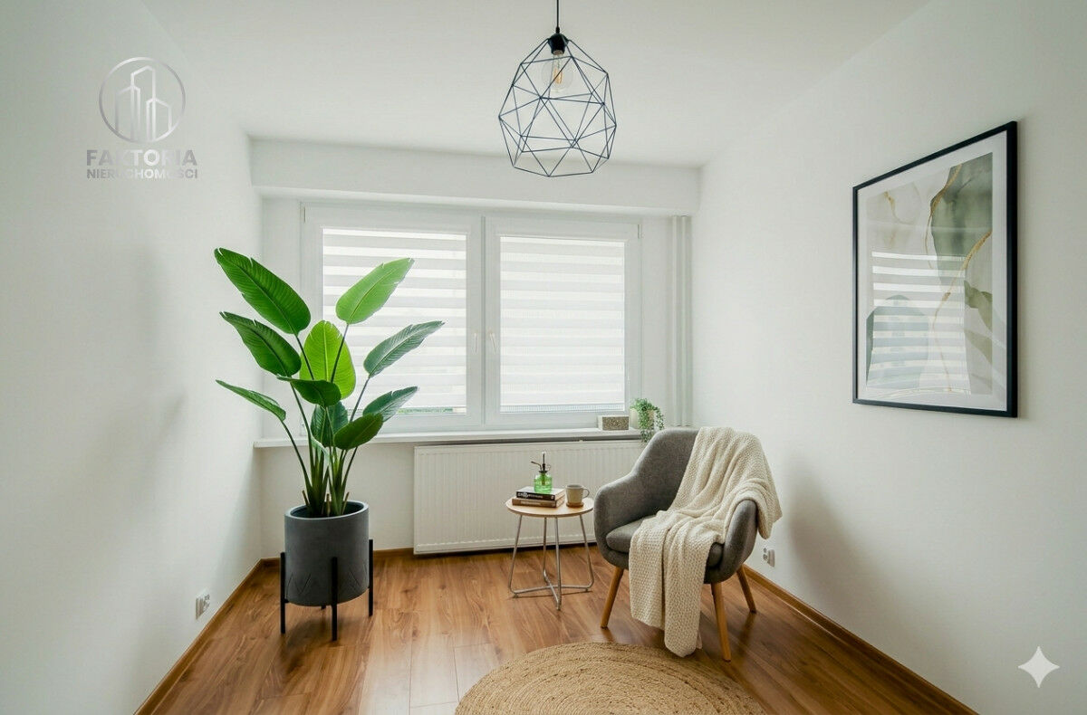 Dzięki przemyślanemu układowi pomieszczeń mieszkanie sprawdzi się zarówno dla rodziny, jak i dla osób poszukujących lokum z możliwością pracy w domu.