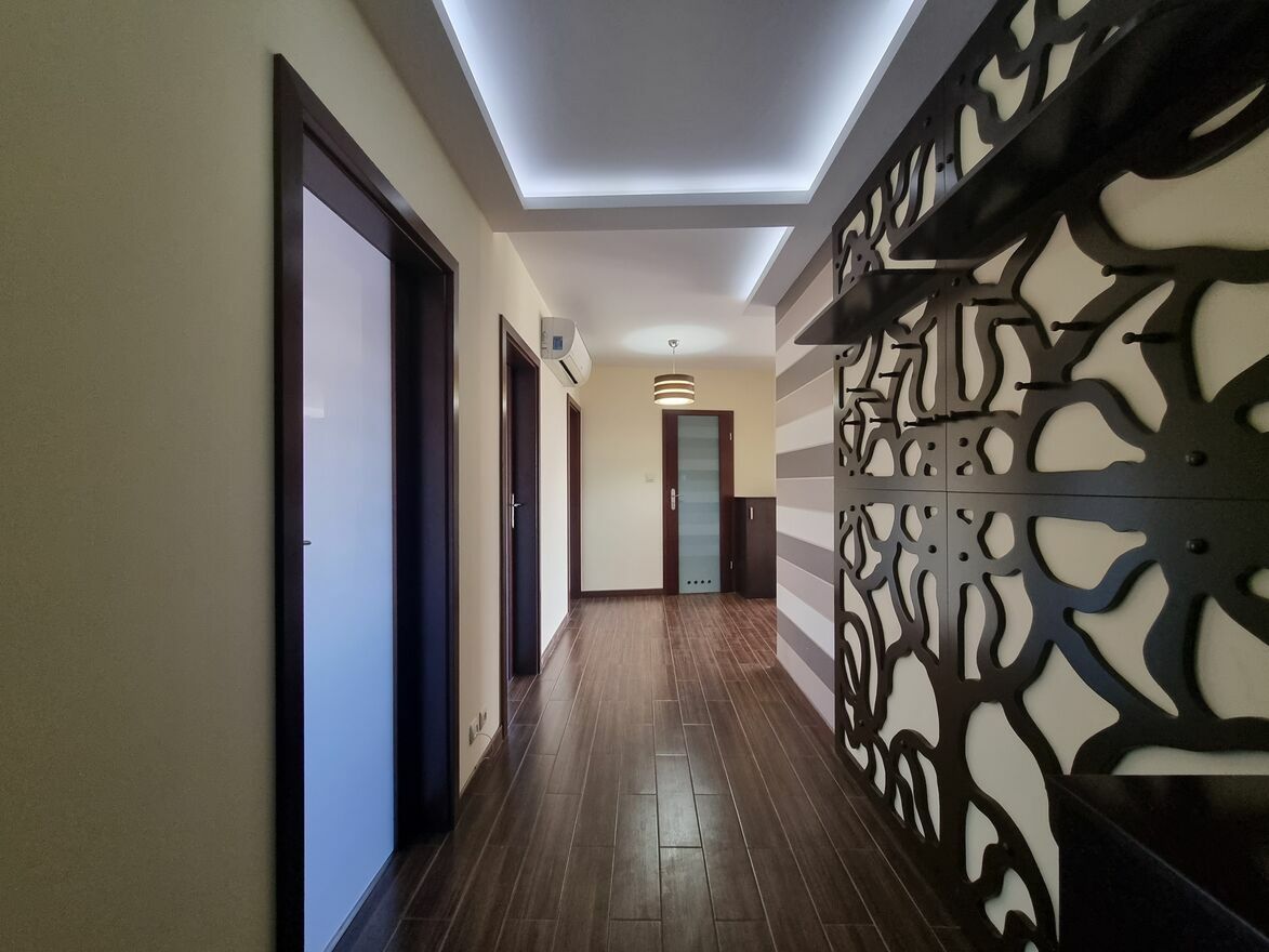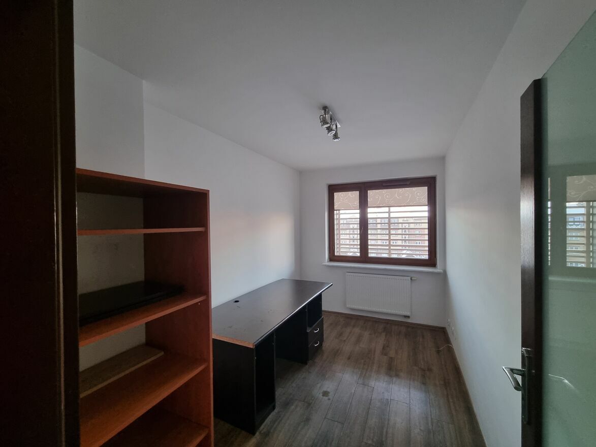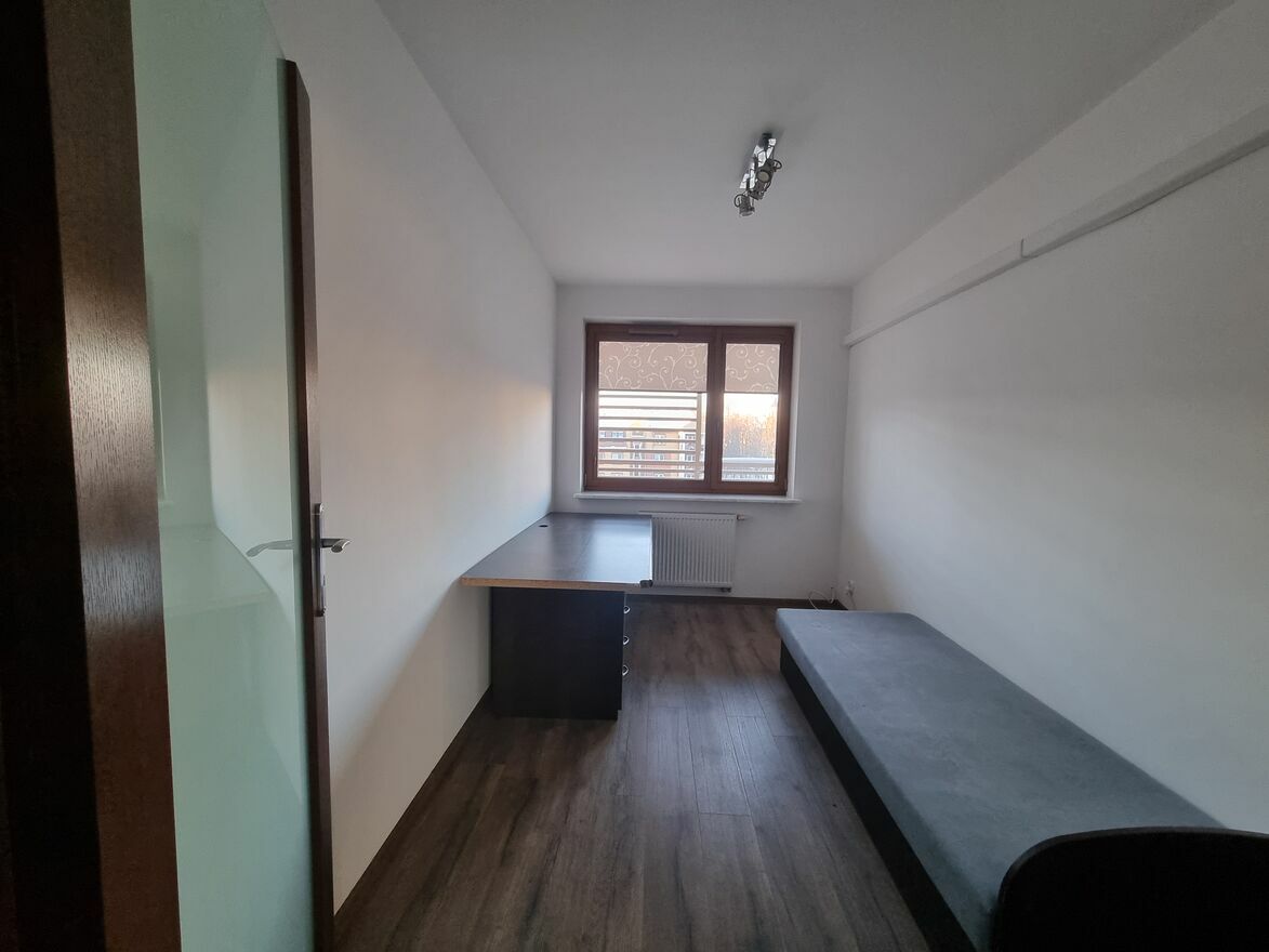 Mieszkanie składa się z 3 pokoi plus salonu z aneksem kuchennym. Każdy z nich może pełnić funkcję sypialni, a istnieje również możliwość ich adaptacji jako biuro. Na podłodze w pokojach położone panele, a w jednym z nich dodatkowo znajduje się zabudowana szafa. Mieszkanie bardzo dobrze oświetlone.