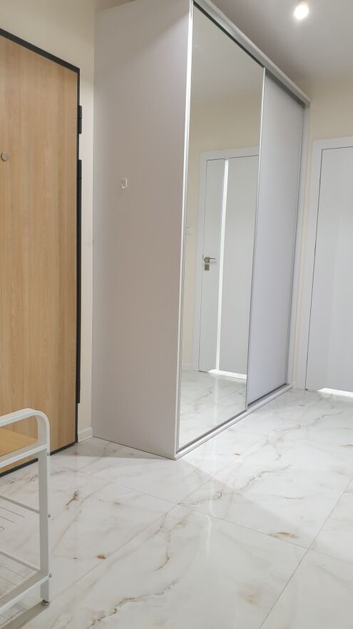 Przedpokój z pojemną szafą wnękowąBalkon, doskonały do relaksu na świeżym powietrzu