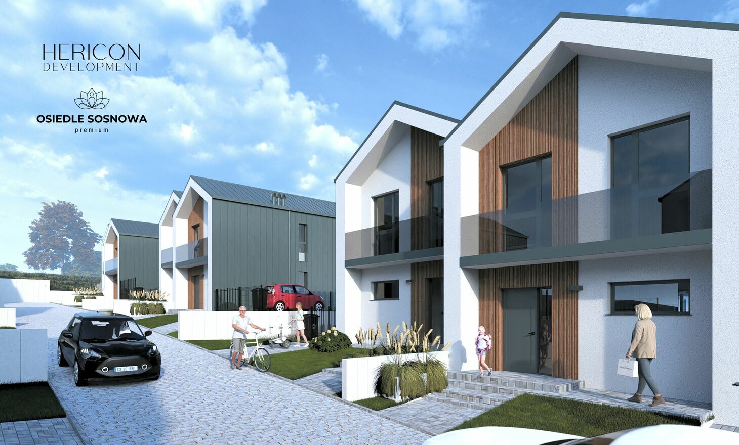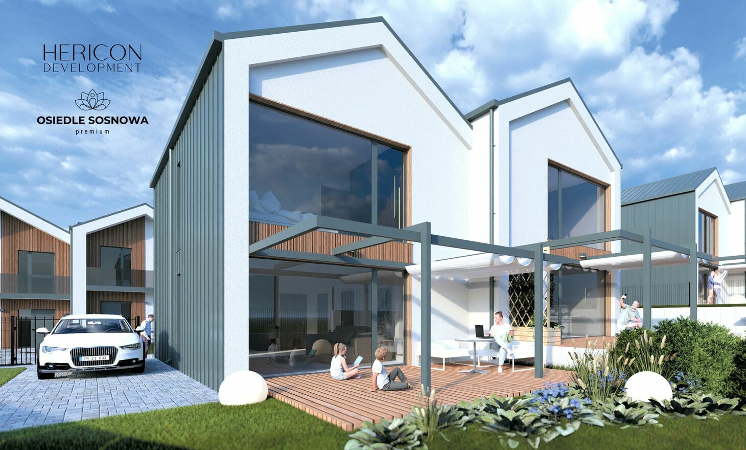 Na sprzedaż dom w inwestycji Osiedle Sosnowa w Dąbrówkach.Osiedle Sosnowa to 16 nowoczesnych i funkcjonalnych domów w zabudowie bliźniaczej, zlokalizowanych w zacisznej i zielonej części Dąbrówek, przy ul. Dwornej.