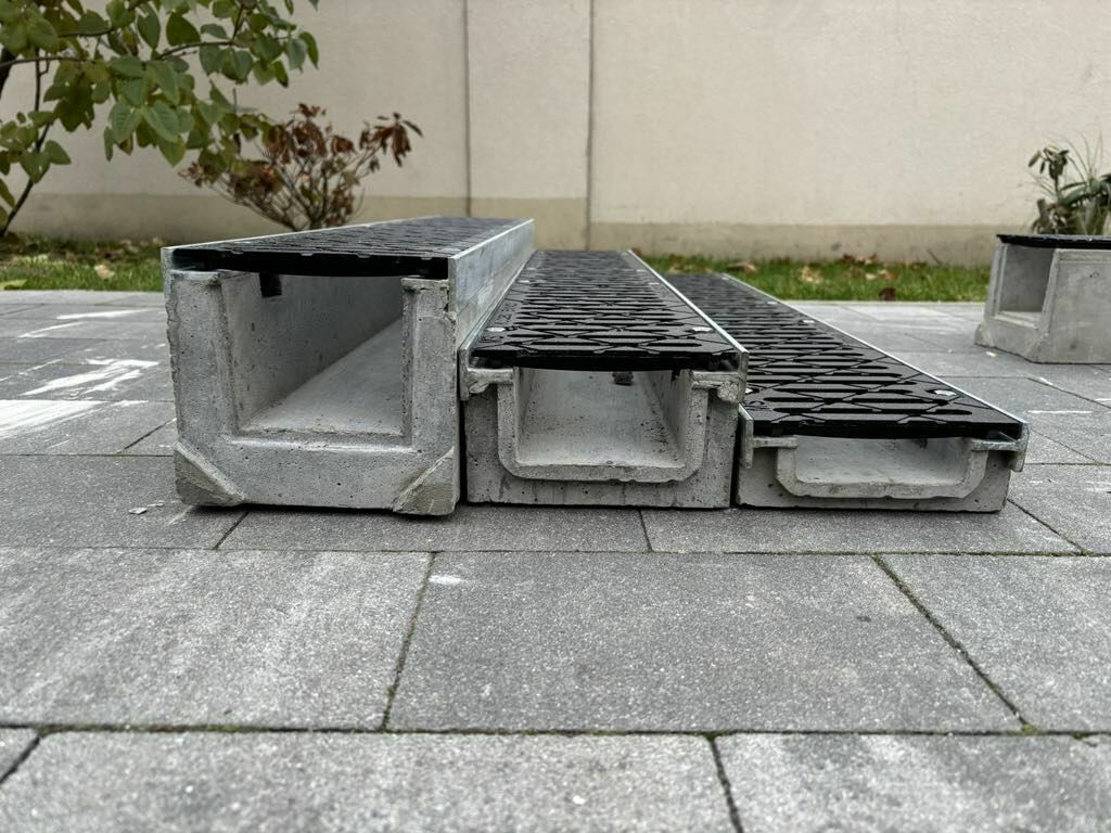 Sprzedam korytka odwodnieniowe betonowe z listwą ocynkowaną ogniowo. Kratki wykonane z żeliwa sferoidalnego, malowane metodą KTL, mocowane na śruby — szybki montaż i demontaż, łatwe w czyszczeniu.Dostępne klasy wytrzymałości: