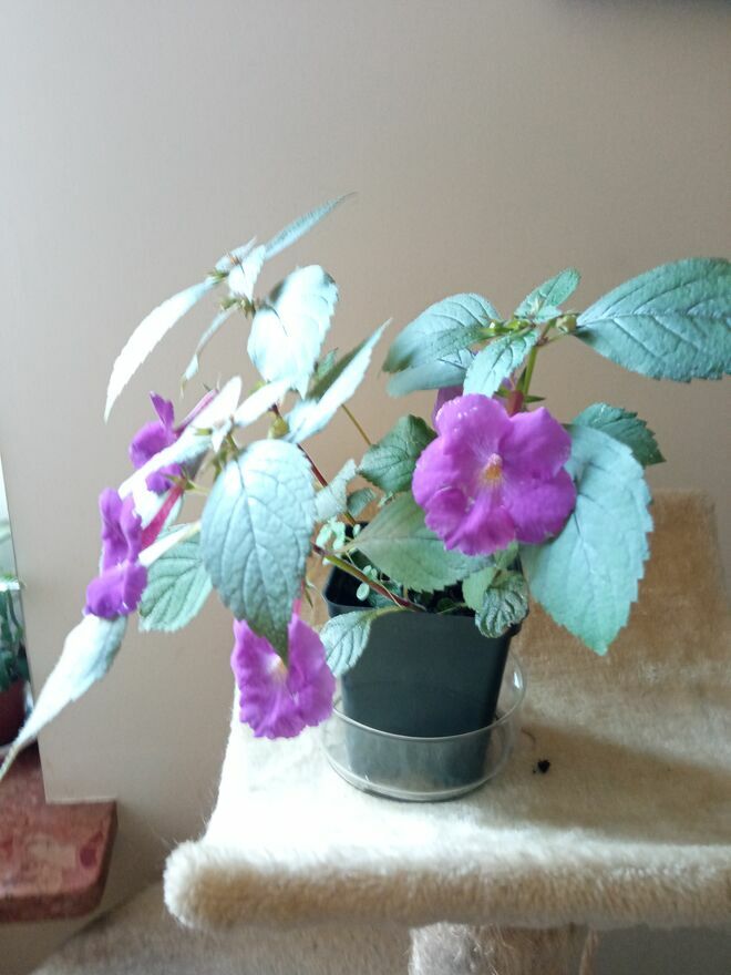 Achimenes fioletowy ze zdjęcia-16 zł -rozpoczął kwitnienie, narosną też kłącza szyszeczki na przyszły rok