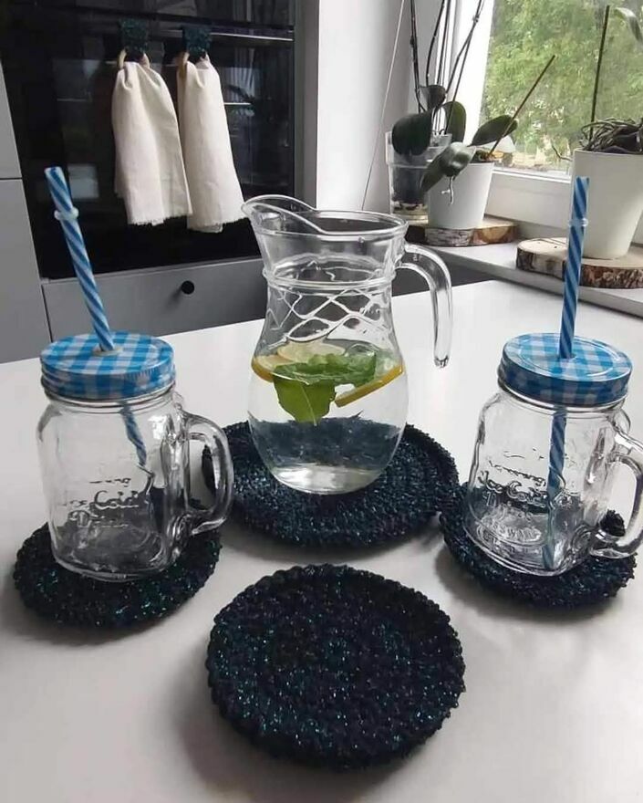 Do użycia podstawek użyłam sznurka bawełnianego z nicią lurexu.