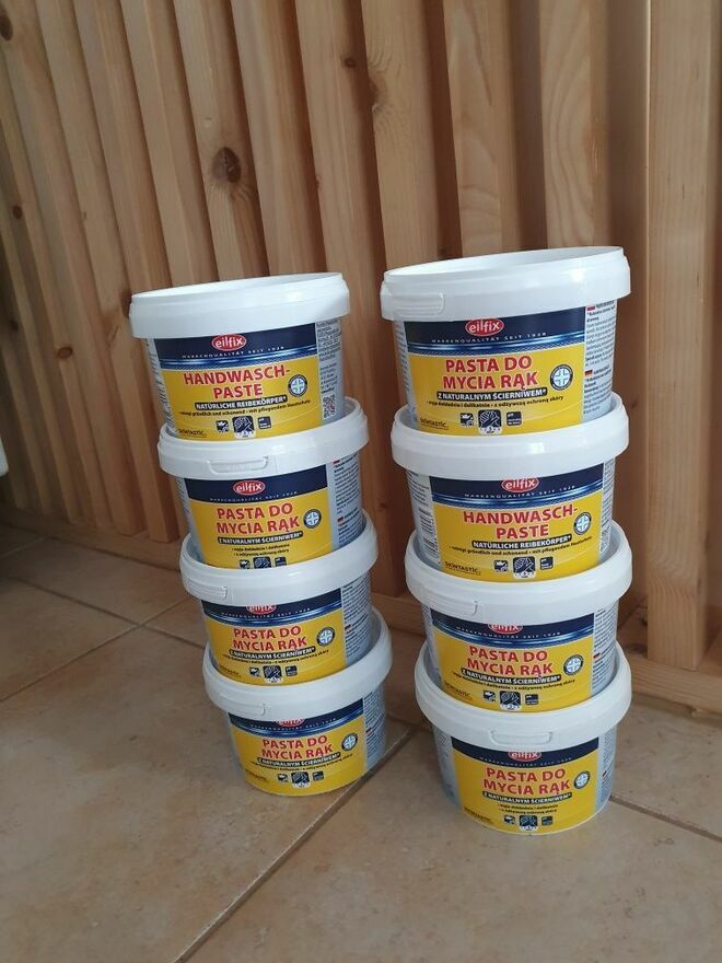Jak w tytule, sprzedam 7 opakowań pasty do mycia rąk eilfix, w dobrej cenie. Doskonale usuwa trudne zabrudzenia po smarach, olejach czy innej chemi. Nie wysusza rąk. Cena podana za sztukę. Przy zakupie 7 opakowań rabat. Zapraszam.Paweł