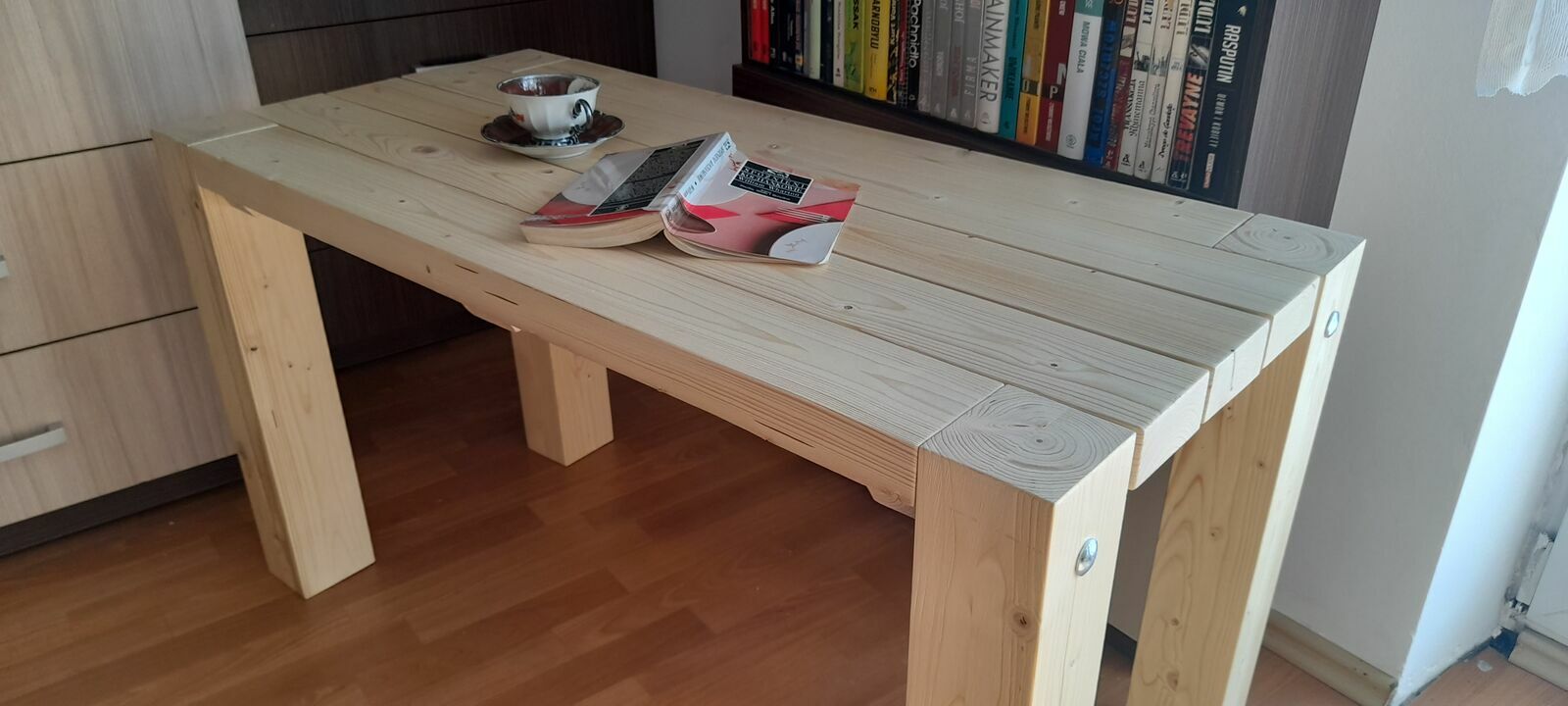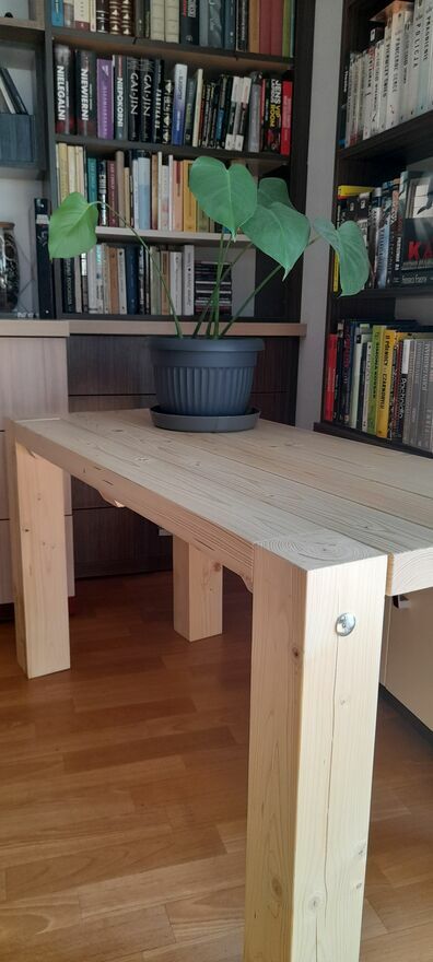 Sprzedam stół drewniany - sosna plus lakier satyna.Wymiary - 1100 x 510 mm