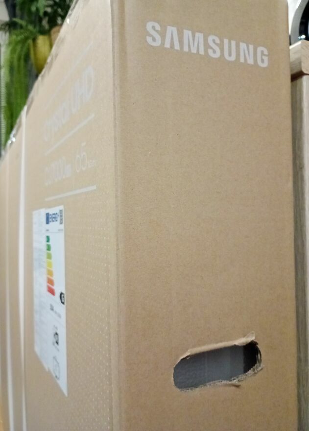 -nowy telewizor marki Samsung o przekątnej 65 cali.