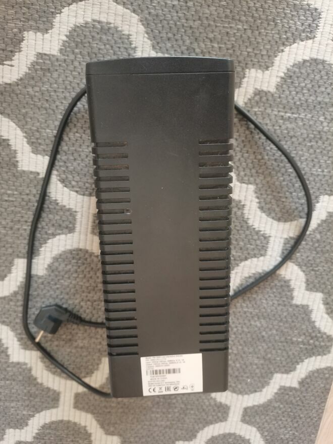 UPS jest uszkodzony, nie włącza się. Być może jest możliwy do naprawy. Może być również na części.Moc ciągła 1200W, miejsce na dwa akumulatory 9H łączone szeregowo - wkłada się bokiem jeden na drugim.