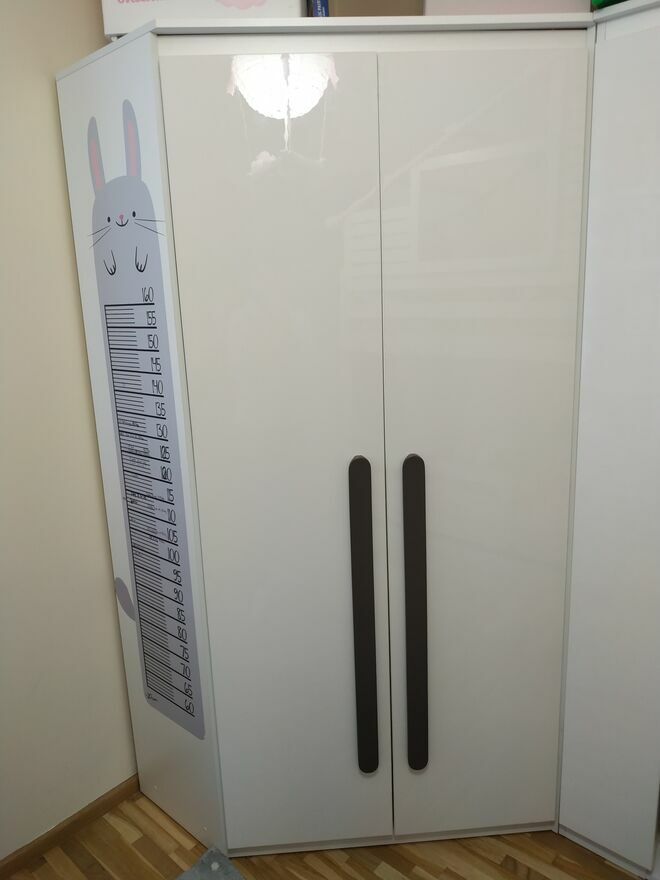 Nowoczesna, biała szafa narożna z kolekcji Replay RP01 marki Agata Meble. Wykonana z wysokiej jakości materiałów, posiada połyskującą, białą powierzchnię. Szafa idealnie sprawdzi się w nowoczesnych wnętrzach, dodając im elegancji i stylu.Stan bardzo dobry, widoczne lekkie ślady użytkowania. Uchwyty można obrócić, nie będzie widać zadrapania.