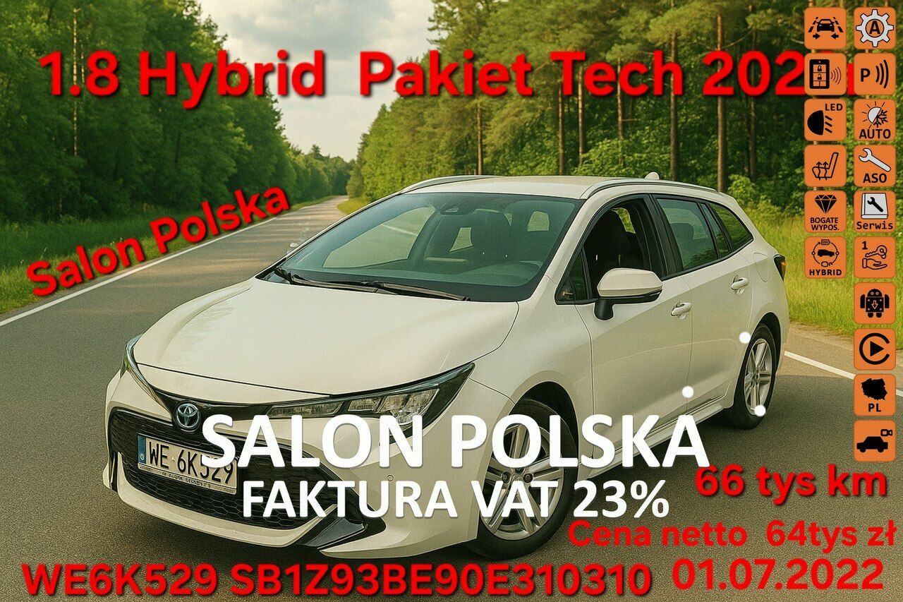 Toyota Corolla 22r Gwarancja + Salon Polska 1.8 HYBRID 66km 1wł