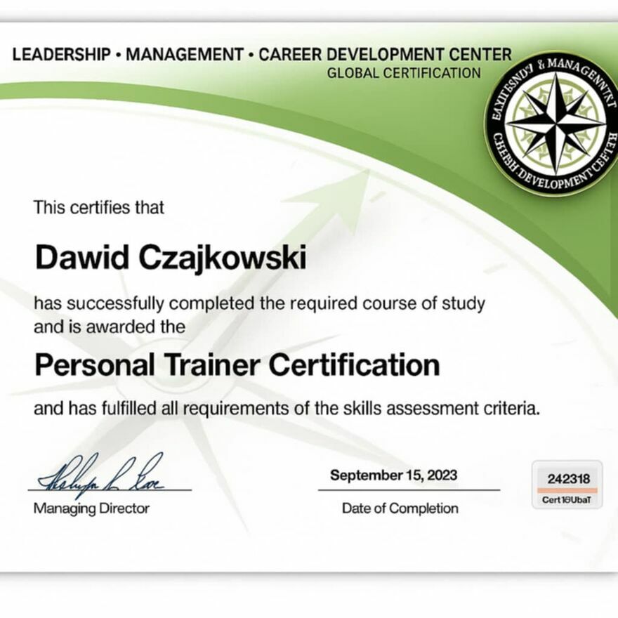 WitamNazywam sie Dawid Czajkowski i jestem licencjonowanym trenerem personalnym i osobistym online