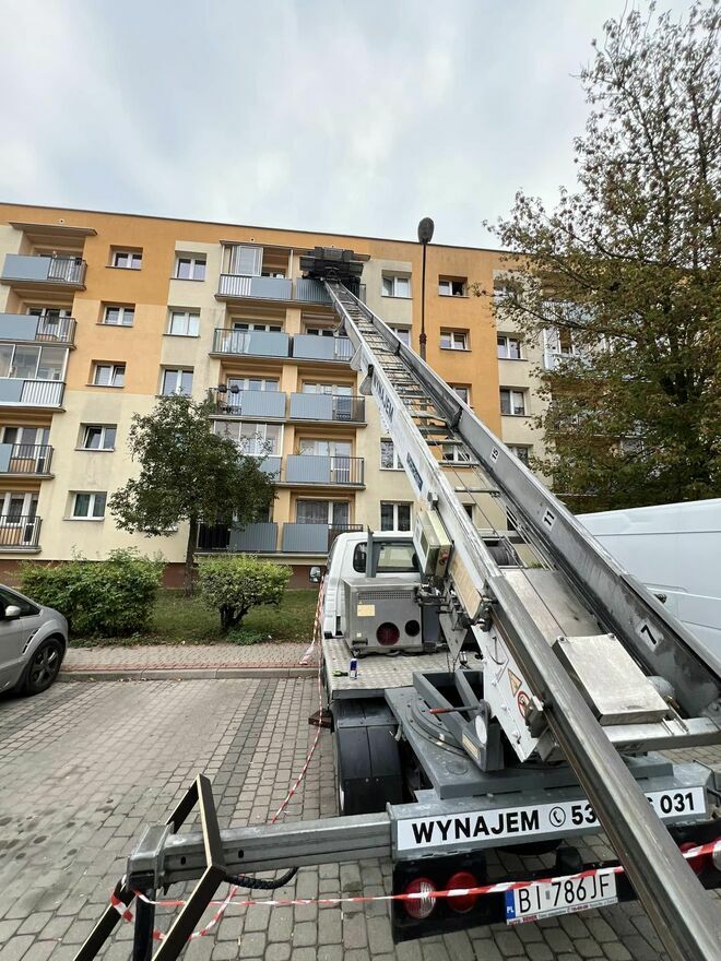 Podajemy przez okno czy balkon materiały budowlane, meble, paczki i wszystko co zmieści się na platformę