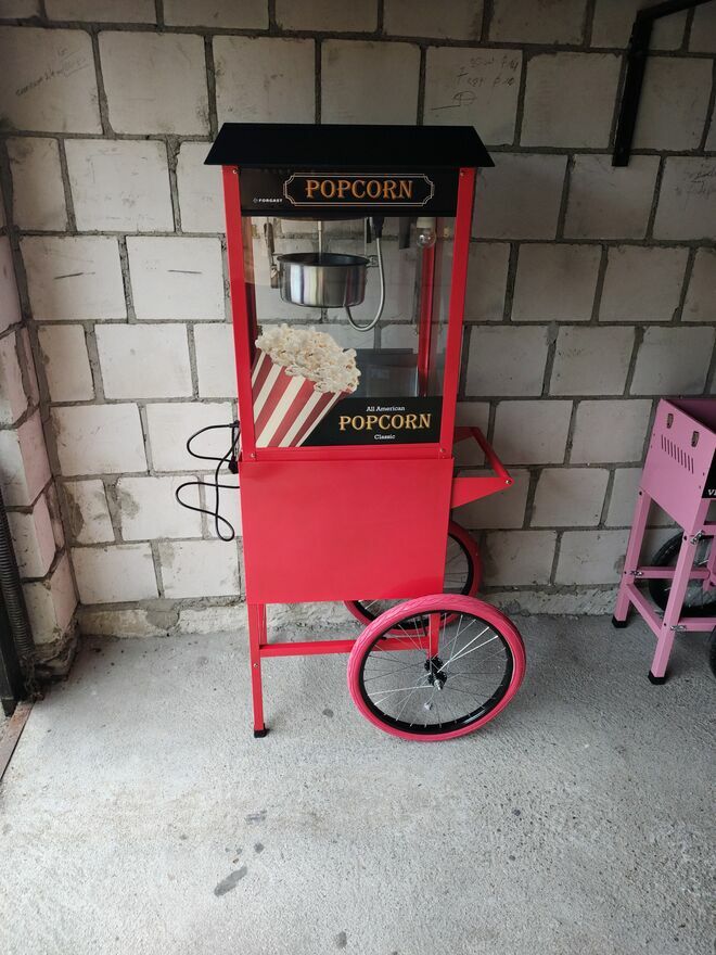 Dodatkowo posiadam także maszynę do popcornu, 3 x zamek dmuchańca dla dzieci w wieku 2-7 lat do zabawy na wolnym powietrzu, namiot-zadaszenie i stół turystyczny o długości 180 cm.
