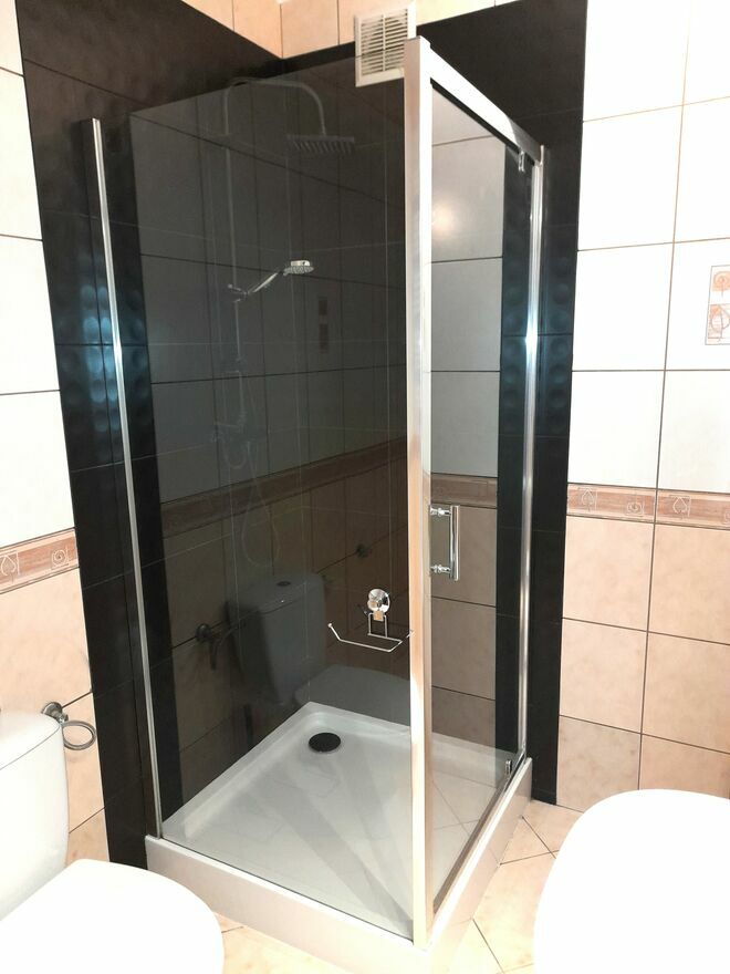 – łazienka z prysznicem i toaletą
